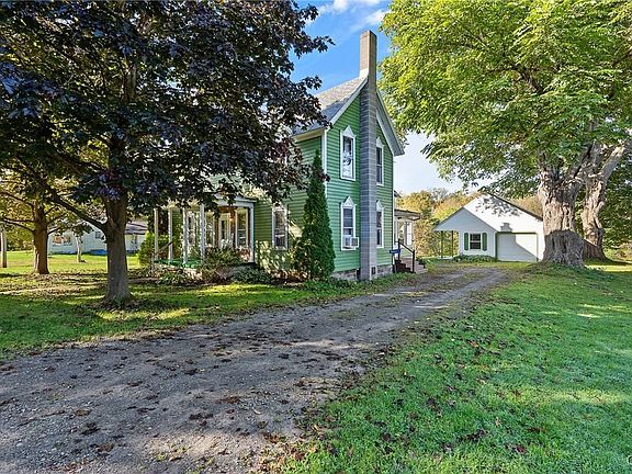 Wonderful home with 5 bedrooms.  Rolling property views and room to breathe on over 1/2 an acre of land.  6 miles from Village of Pulaski.  Only 4 minutes from 81 (exit 21 between Mexico and Pulaski).  Public water is connected and over 3,000 square feet of living space and plenty of storage.  1 bedroom and a full bathroom on the main level, and 4 spacious bedrooms upstairs.  Detached garage has electricity, room for your vehicle and a shop area plus additional loft for storage.  Separate entrance in back for potential to finish a suite with kitchen, bath, and living space.  Roof on the front, main portion of the home is only 3 years old.  Natural hardwood floors throughout the upstairs, stone foundation, and the warmth from the 2-zone hot water boiler provide a must see experience.  Home is sold AS IS.  Investors, 5 bedrooms with a main level full bathroom.  Storage in the detached garage for outdoors toys a short drive from extremely popular salmon fishing waters, with some love and updates, it's a potential windfall for a lodge/short term rental opportunity! 2025-06-01