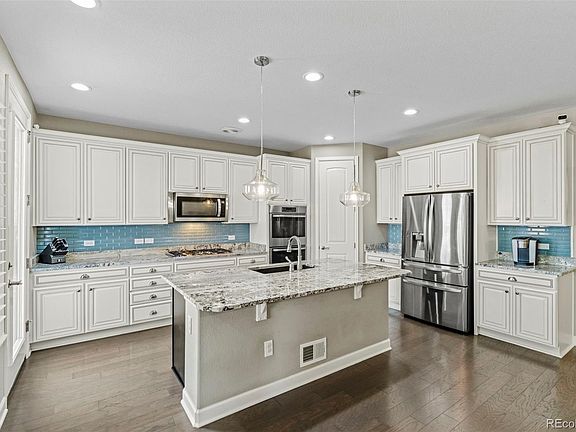 As far as warm welcomes go, it's difficult to beat 13 N. Jamestown Way in the wildly popular Traditions subdivision in Northeast Aurora. This gorgeous 4-bedroom, 3-bathroom, 3,700+ sq. ft. Richmond American ranch home is perfectly positioned across from acres upon acres of open space & the neighborhood park ensuring peaceful living! Some highlights of this exceptional home include but are not limited to: A newer Class 4 impact resistant shingle roof, new exterior paint, plantation shutters, new dishwasher, new microwave, upgraded ceiling speakers, pre-wiring for 5.1 surround sound AND a huge 3 car attached garage! This charming home boasts 2 main floor bedrooms as well as 2 bathrooms plus a flex office/den room and offers the perfect layout and space for everyone! The kitchen delights with gleaming granite countertops, crisp white cabinets, and a vibrant blue tile backsplash complemented by stainless steel appliances while the main floor primary suite features a modern barn door opening to an elegant en-suite bathroom with a double vanity, spacious shower, and a MASSIVE walk-in closet that will house any sneaker fan's coveted Air Jordan collection! :) Venture downstairs to the finished basement with 9 foot ceilings where you'll find two additional conforming bedrooms, each featuring generous walk-in closets and an expansive game room/secondary family room that is ideal for unforgettable movie nights and entertaining guests. This versatile area offers endless possibilities for relaxation and recreation. Step outside to the covered back patio where you will enjoy outdoor grilling and al fresco dining while Fido enjoys his/her fenced backyard and the included backyard shed is perfect for housing gardening tools, outdoor equipment, & seasonal items. This charming home has been meticulously maintained, lovingly cared for and offers incredible value! It's also close to Buckley Airforce Base and DIA so do yourself a favor- don't wait long and get your showing on!!!