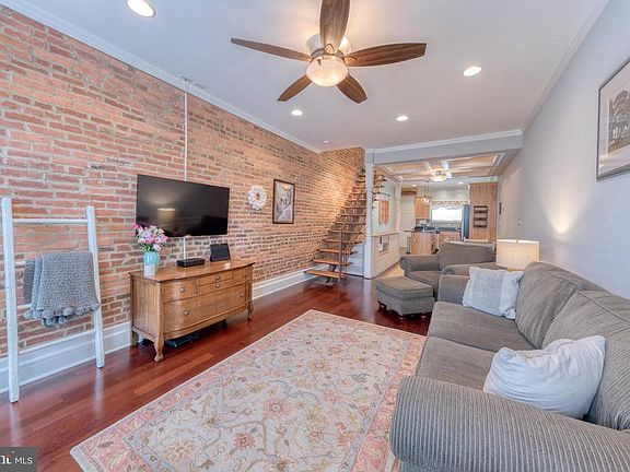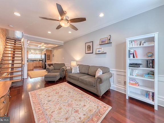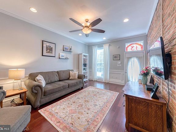 Gorgeous Baltimore Row Home just steps from Patterson Park! This home features 1st floor open floor plan, tray ceilings, wainscoting, chair and crown molding, ceiling fan, lovely hardwood floors throughout, floating staircase, recessed lighting and exposed brick wall. Great kitchen with SS appliances, granite counter tops, breakfast bar/island with extra sink for food prep, stone back-splash, under-cabinet lighting, pendent lighting and high end cabinets with unique touches. Half-bath is located off the kitchen with door to nice rear fenced patio for outdoor entertaining. 2nd Floor includes two of the three bedrooms, nice size closets, crown molding throughout, recessed lighting, ceiling fans in both bedrooms, unique lighting fixtures, Master BR has tray ceiling and Ensuite Master Bath. From the 2nd floor there is a spiral staircase that leads to the awesome rooftop deck with sweeping views of the park! Basement is fully finished with large private 3rd bedroom, recessed lighting throughout, front loading laundry units, full bathroom, open area great for seating or office space and storage area. Roof has a brand new coating. Don't miss this gem!!!!