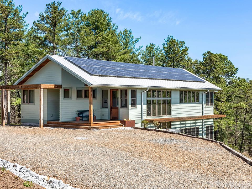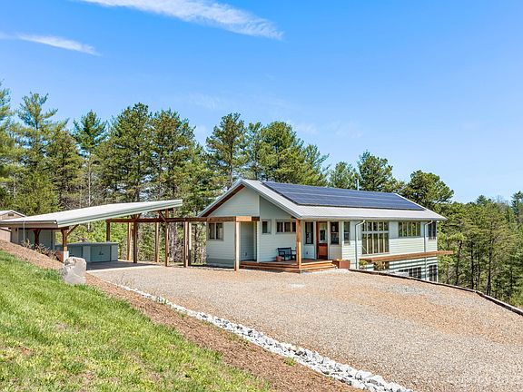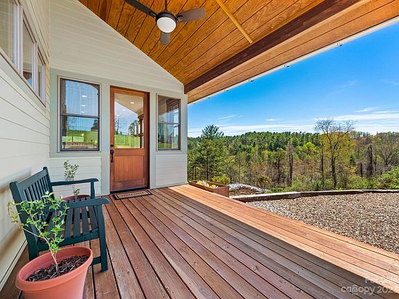 Net-Zero masterpiece on a 4.5 acre private oasis about 20 min from downtown Asheville, 10 min to heart of Marshall and steps from massive Sandy Mush Gameland trail system. Pull into the carport and take a single step up into a vaulted space surrounded by 180 degrees of forest view. Custom designed for those who wish to simply sleep & snuggle in their bedroom and live large all day long. The common areas are where life really unfolds. The kitchen is dreamy - crafted for sustainability, quality, and fine food. It opens to a gracious living area and spills onto the "treehouse" screened porch. Watch for screech owls nesting in sight or cozy by the wood stove. Downstairs a spacious and secluded secondary suite boasts panoramic views, a tasteful full bath, and a private porch. Large unfinished space offers day-lit room to expand and plentiful storage. Cleared land provides beautiful open space and opportunity for a mini-farm, orchards, and tremendous gardens. Ask for more extensive details!