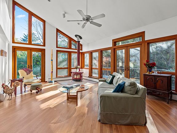 A must see custom designed and built home offering a beautiful flow between interior and exterior spaces. The home maximizes the natural light coming through, while situated on the 1.4 private acres. The home boasts a large deck off the living room connecting with a spacious screened in porch off the dining room. The screened in porch also connects to a second smaller deck off the back of the home perfect for grilling. The master bedroom complete with master bath was designed to be private from the other two bedrooms which share an additional full bath. The living room is surrounded by windows letting in an abundance of natural light, but also includes a Vermont Casting wood burning stove for those chilly nights. There are custom built-ins in the dining room and the kitchen includes butcher block counters. Th ere are unique details and lighting fixtures throughout. The second floor has an office/library loft overlooking the living room and to complete the second floor, there is a large room with an adjacent space plumbed for a third bathroom. The two car detached garage is finished and ready to be a studio, workshop or simply to be used for parking your car in the winter. All of this, and only a few short walk from private lake rights to Lower Rhoda Pond at a modest HOA fee. With Catamount a short distance away, this home is perfect in any season.