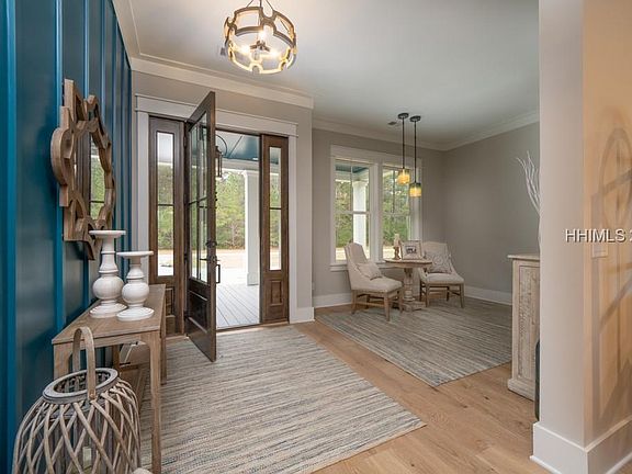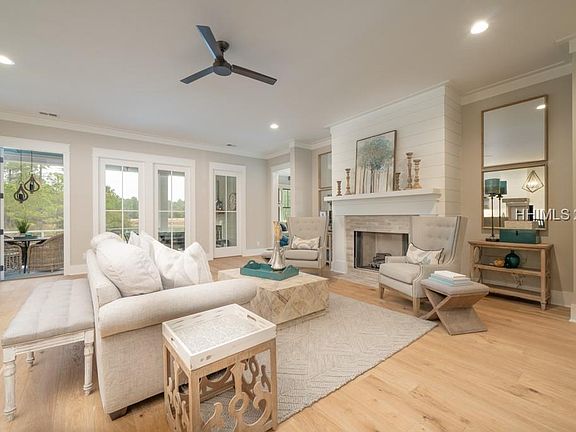 Recently built 3/4 bedroom, 3.5 bath Lowcountry home overlooking Arrowhead Lake with sunrise views. Oldfield is a sports-minded, gated community on the Okatie River ideally situated between historic Beaufort, Old Town Bluffton and Hilton Head beaches. Open plan with spacious kitchen/ living room (fireplace), 1st floor master and Carolina Room (fireplace) and water views. Floor to ceiling glass provides an abundance of light, with access to screened porch (fireplace). Additional features include 10 foot ceilings, crown molding, 8 foot solid doors, hardwood floors, 13 foot kitchen island that seats 8, quartz counters and KitchenAid appliances