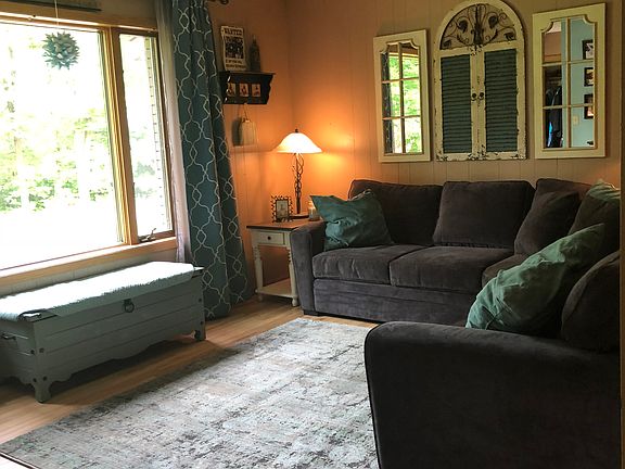 What a nice location! This updated 2 br 1 bath ranch home has an attached 2 car garage (22'x28') on a quiet side road with .60 acre yard! The U shaped kitchen has been updated with a unique finish to the cabinets, new sink and counter tops and includes all the appliances. The dining area is open to the kitchen and has a patio door to the back yard that is partially fenced, which would be perfect if you have pets or young children. The living room is bright and cheery. The bath has a tub/shower unit. Both bedrooms have closets. Downstairs is an awesome L shaped family room with tongue and groove Basswood walls, space for a pool table, treadmill and another TV sitting area (great for those fall football games!) This home even has Central Air Conditioning and a new roof was added in 2016! The yard has some nice landscaping with beautiful perennials, mature trees and a fire pit! Just behind the property is access to the Montreal X-Country Ski trails! Take a look at this one!