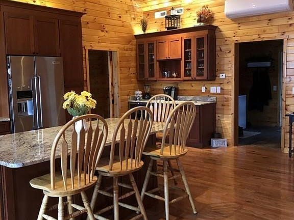 RARE OPPORTUNITY-Spectacular year-round home on Sunset Lake! 230' of waterfront with a beautiful sandy beach and a long alum dock! Newly renovated in 2017. Reno/addit. include very large kitchen with over sized granite island for entertaining. Upgraded xl cherry cabinets, ss upgraded appliances, refrig, range, d/w, under counter micro, and wine refrig. New master bedroom, new master bath and mudroom. Gorgeous knotty pine cathedral ceilings w/hard wood floors throughout. New roof, h/w heater, and Buderus boiler--6 zones. Wrap around redwood deck. Alarm system w/5 cameras. 2 stall garage-38x24 w/11' ins. doors/openers, and 1 stall garage under w/quiet opener. Basement is partially finished, heated, ss range, refrigerator, dishwasher and granite counter tops, full bath--and walk out to the beautiful beach. NEW 3 bedroom septic being installed by seller. (Wall and door can be added to office for additional bedroom.) Ins. doors and windows. OPEN HOUSE on 5/4/19, 2-4pm