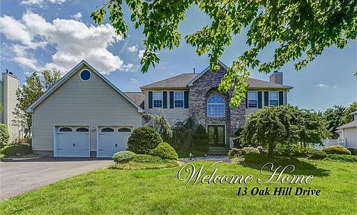 Welcome to 13 Oak Hill Dr. This 5 Bedroom 3 full bath Colonial was built with luxury and good times in mind. Two story entrance foyer, custom Hickory and Cherry floors, great room with wet bar. Full wall brick fireplace in Living room. Central Vac. and underground sprinklers. Bonus room off master bedroom. Finished basement with Movie Theater, home office and exercise room. Private yard with deck, stamped concrete patio, in-ground pool and hot tub.