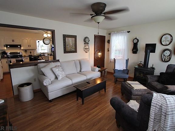 Don't miss this adorable and affordable ranch! Beautifully updated and ready to move right in, this property features laminate hardwood floors throughout, a bright and spacious kitchen with painted cabinetry, granite counters and lots of storage along with efficient natural gas heat and central air. The cozy family room is open to the kitchen and offers lots of natural light through the plantation shutters. Relax on the back porch which overlooks the lovely yard with great landscaping, gazebo, above ground pool, two storage sheds and plenty of yard space for everyone. With it's convenient location and pristine condition, there is so much to love about this property!