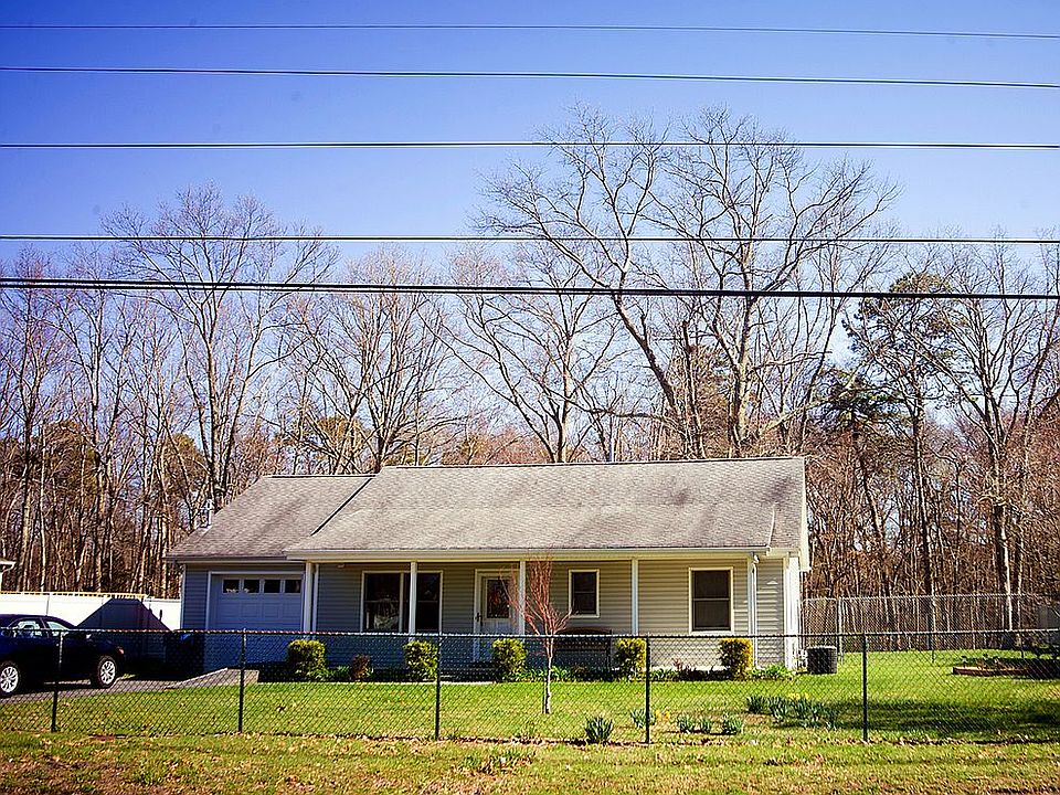 Completely renovated floor to roof in 2004 including all appliances. Stand up attic. Expanded to 3 bedroom, 2 bath home with attached garage. Natural maple hardwood floors . Crown molding and floor molding throughout. Tile floors in bathrooms and kitchen.and foyers and laundry area. Natural oak kitchen cabinets and large island in kitchen seats three. Covered front porch. 2006 Deck in back made of grey Trex with white vinyl rails., and installed asphalt driveway. Fully fenced front and back yards. Back yard backs up to uncleared wooded area. Resin Shed on concrete base in back yard for riding mower, gardening tools. New furnace, central AC and compressor in 2020.