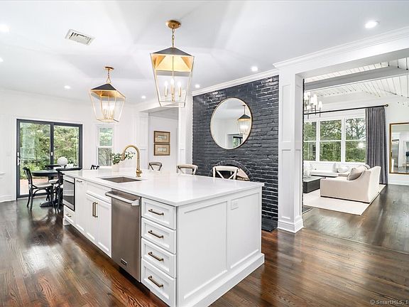 Welcome to 13 Old Castle Drive, a stunning, fully reimagined Colonial set on 1+ level acre lot and nestled on a peaceful cul-de-sac in one of Newtown's most sought-after neighborhoods with scenic views of the Borough. Thoughtfully transformed over the past three years, this elegant 4-bedroom, 2.5-bath residence combines timeless architecture with upscale modern living across 4,300+ square feet of beautifully finished space. Step inside to find refinished hardwood floors flowing throughout, fresh interior paint, and designer lighting that elevates each room. Remodeled gourmet, eat-in kitchen-with top-of-the-line Viking appliances, Quartz countertops, an expansive 10'x4' center island, walk-in butler's pantry with sink and beverage fridge. A double-sided gas fireplace connects the kitchen to the dramatic vaulted-ceiling family room, which features double sliding glass doors that open to new patio and decking. Main level also includes an oversized foyer with French doors leading to a music room or office, den space, inviting formal Dining Room along with a stylishly updated powder room. Upstairs, the primary suite boasts a new custom walk-in closet, full bath with spa-like ambiance. Renovated hall bathroom serves the additional 3 bedrooms with style and function. New Andersen windows and French doors on the main level, and Harvey replacement windows upstairs. Finished lower level with a home gym, media room, designer laundry with barn door, and mudroom and generous storage. With upgraded central air, new gutters, and high-end finishes at every turn, this turn-key property is the perfect blend of classic charm and modern luxury. Furniture available for purchase - please inquire with the listing agent.