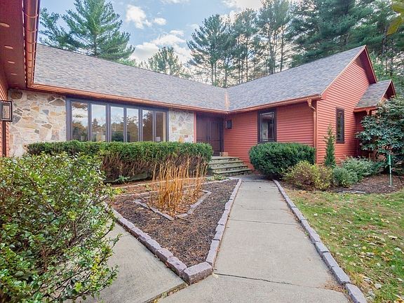 Location! Location! Location! Imagine a woodland retreat down a small private road with a swimming pool and a serene waterfront view. You will call this haven home. Beautiful, expansive 3800 square foot ranch home situated on Lakeview Pond with 4BR, 2½ Baths, formal and informal dining spaces and 2 living rooms. All minutes away from I495 & I95, and Commuter Rail (Norfolk/Foxboro). Patriot Place is 5 minutes away and Stop and Shop is less than a mile down the road. This beauty of a home has had the following recent updates: new fence (2012), new architectural roof (2017), new copper gutters(2017), new HVAC (2018), new granite counter tops in kitchen and bath (2020), new flooring in bath and bar area (2020) and interior painting (2020). All these updates on a private Lakeview Pond which you can enjoy f