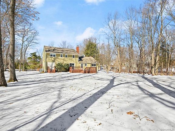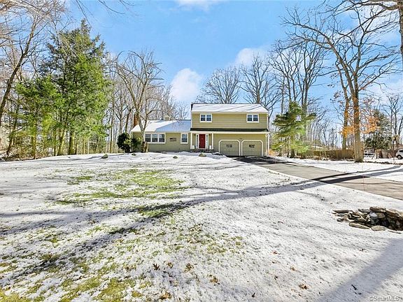 Beautifully set on 1.05 LEVEL acres in lovely neighborhood of connecting cul de sacs in heart of Quaker Farms! Blue stone front porch overlooks the sweeping front yard and the charming country neighborhood! Spacious foyer with two sets of French doors gives entry to a living room with hardwood floors and brick fireplace; and the family room featuring an exposed beam, a second fireplace (floor to ceiling raised hearth brick) and sliders to the bi-level deck overlooking LEVEL Private yard! French doors from the LR also leads to the formal dining room which opens to the UPDATED kitchen with granite counters, center island, stainless steel appliances, under cabinet lighting, patio door and is accented with an exposed brick wall with Dutch oven design. Also on the main level is the laundry room and half bath. Hardwood floors continue throughout the second floor with main bedroom including full bath; three additional bedrooms (two have walk-in closets); and updated full hall bath. Oversized 2 car garage with storage and 9x5 shed with exterior access/deck! EXPANSIVE LEVEL yard highlights mature landscaping and two-level deck! Great location for commuting. Perfect neighborhood for walking, biking. WONDERFUL outdoor living!