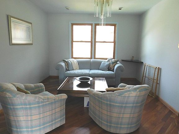 This terrific 4 bedroom 2 1/2 bath home has renovated kitchen and bathrooms. Living room has vaulted ceilings with beaming Brazilian hardwood floors throughout the dining room. Kitchen has 2 ovens, gas range, recessed lights, corian counters, and plenty of cabinet space. There is a 2 tier deck off the kitchen and family room. Large family room has a beautiful stone wood burning fireplace with custom built in shelving. Windows in the family and living rooms have window seats. Upstairs has 4 generous sized bedrooms with plenty of closet space. Master bedroom has built in bookcase that overlooks the living room. Master bedroom has large walk-in closet and dressing area. Basement is finished and has a storage area with a walkout door to the outside.