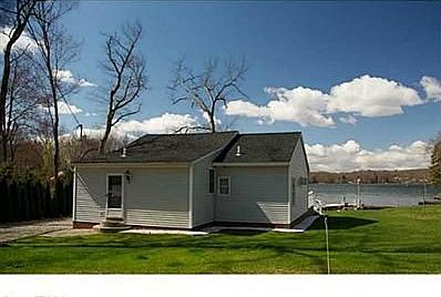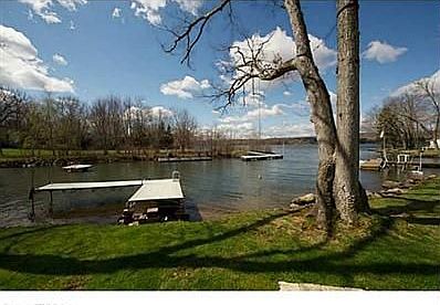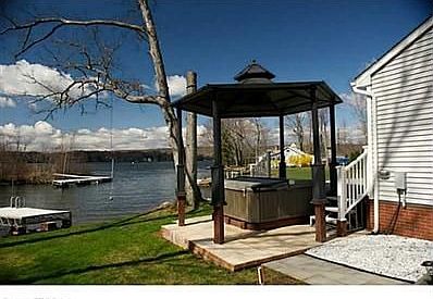 Lakefront home situated on a private cove featuring beautiful western lakeviews and sunsets. 33x23 step-down deck, hot-tub, gazebo and private dock. Open floor plan with elevated ceilings and skylights. This home has incurred fire damage but is repairable