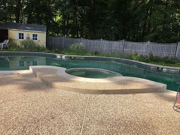This oversized 4 bedroom home sits on just over an acre in the sought after Scribner Hill Estates neighborhood. The farmer's porch welcomes you into the tiled foyer. The kitchen has stainless steel appliances and two shelved pantry closets. Sliders out to the large deck which overlooks the freeform inground gunite pool and jacuzzi. The familyroom has a wood burning fireplace. Good size livingroom and dining room great for entertaining. Living room, dining room and familyroom have LVT flooring. There are 4 generous bedrooms upstairs and a great size linen closet. Both bathrooms have double sinks and tile floors.The pool area is fenced and there is a 2 car garage under with plenty of space for additional parking. Forced hot water heat and 2 central air units. This house is awaiting your finishing touches to make it your own!!