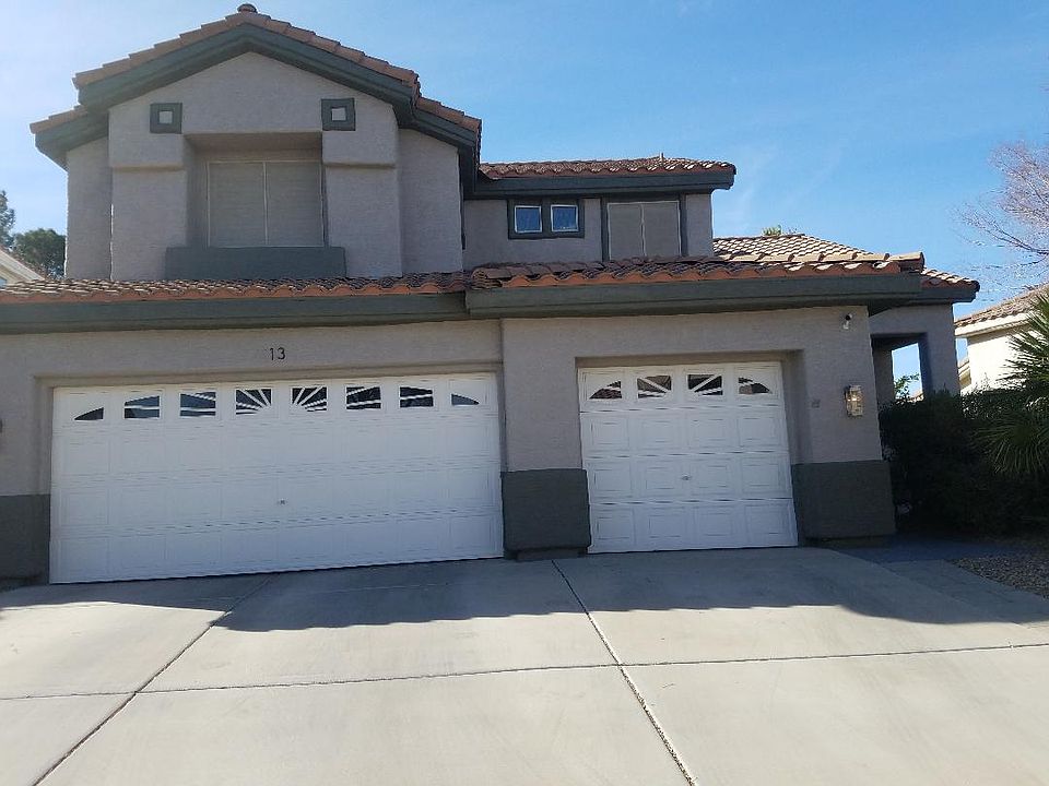 Amazing two story home in the sought after Green Valley Ranch area with a downstairs master bedroom and bathroom. It's like having a single story home, but better. Beautiful upgrades include wood flooring, chef's dream... completely renovated kitchen with quartz countertops, oversize cabinets with many drawers for easy usage and new tile flooring, covered patio, new putting green, loft with built in desk and cabinets, and custom wood work throughout. Walk-in closets in master, two bedrooms and full bath upstairs. Three-car garage with storage racks and Polyurea custom coating floor. New tile flooring in powder room and laundry room. If you're looking for all of the above this is a must-see home.