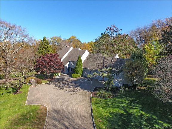 An amazing contemporary home situated on one of the most beautiful properties in Newtown. Outdoors there are over 8 acres of rolling property which is professionally landscaped with stone walls, a beautiful pond for small boats and ice-skating and private woods - a "park-like" setting. This home is located in southern Newtown close to almost 30 acres of open space within the former Cherry Grove Farm - wonderful for hiking, exploring and horse back riding. It is also a great location to commute to lower Fairfield County or for those looking for a retreat from the city. You will not find a more pleasing unique home inside. Soaring vaulted ceilings, unique windows and sliders throughout, a huge indoor pool space turned into workout space, two fireplaces, 4 car garage for those who love cars - enough space for large gatherings but also some tucked away spaces for private thoughts. This home is truly one of a kind. A great escape for busy lives