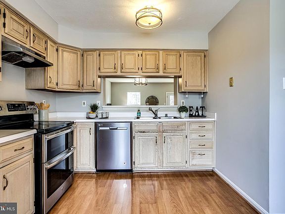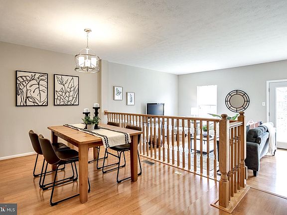 Three bedroom/2.5 bath end of row townhome in excellent condition. Main level features laminate floors and includes large kitchen with space for table and chairs and pass thru to dining room, guest bath and step down living room with French Doors to large deck backing to open space and trees. Upper levels offers three full bedrooms and two full baths. Bedrooms all have ceiling fans and primary bedroom includes private bath. Lower level is fully finished providing great space for family room/playroom or workout room with walkout to open space in rear. HVAC replaced in 2016.