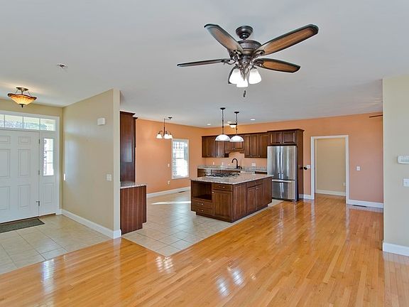 ONE LEVEL LIVING is yours in this 2012 custom built 3BR 2BTH ranch w/Central AC! Contractors own home is loaded w/upgrades & offers easy access w/ramps from the driveway & garage + addt'l handicap features! The open foyer welcomes you into this sunny home featuring 9 ft. ceilings & an open concept LR/DR/Kit w/amazing flow, function & design. Layout is perfect for entertaining or just relaxing by the gas fireplace w/antique mantle. The stunning kitchen is complete w/an oversized island w/storage, microwave & gas cooktop built-ins + pantry, granite counters, double wall ovens & SS appliances! You'll love the private MASTER BEDROOM WING w/tray ceiling, huge walk-in closet, master bath w/double vanity & roll-in shower! The composite deck overlooks the serene yard w/seasonal scenic views & borders 72+ acres of town land! Sec. system, 1st fl laundry rm., 2 car garage w/attached workshop/storage room, low-E windows, wood floors, shed & huge basement make this a winner! BONUS: a pear tree!