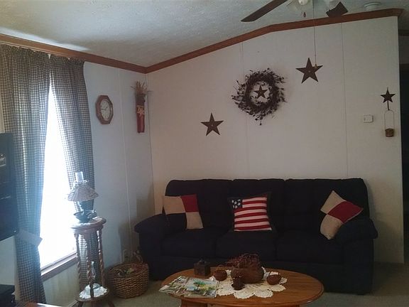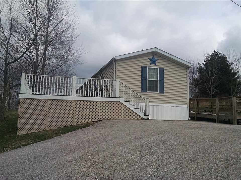 Partially wooded 2.75 m/l acre tract, with Salt Creek Access. Paved driveway leads to well maintained 2006 2 Bedroom, 1 1/2 Bath, Dutchess mobile home. Open concept living room/kitchen with appliances. Total electric with central air conditioning. 16x26 front deck and rear 12x16 covered deck with wheelchair access. 2 outbuildings.