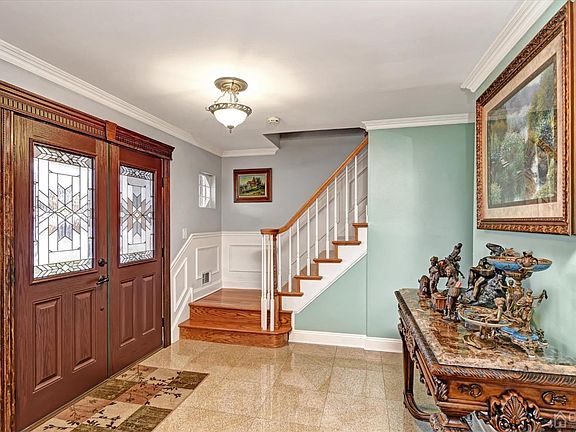 Ready to unpack before the summer? This well-looked-after 4br/2.5bath home awaits, features teak HWF thr out, crown molding, spacious LR w/well-designed box molding, elegant wallpaper, & huge windows. Updated kitchen w/granite fl tiles, granite CTP, center island, SS appliances (new fridge), custom made cabinets + spacious eat-in area overlooking BY w/patio to chill & BBQ. Homey FR w/huge windows, WBF, skylight, custom made ceiling. Upstairs features crown molding, box molding, updated bath w/engineered wood ceiling, marble wall tiles and countertop. MBR w/crown molding, ceiling fan, tastefully updated full bath w/shower. Partial finished basement adds extra living space & storage. New HWH, AC coil, roof, garage door motors (all in '23), Anderson window throughout. Blue Ribbon school system, near shopping, restaurants, Rt 18 & all. Move-in ready for you!