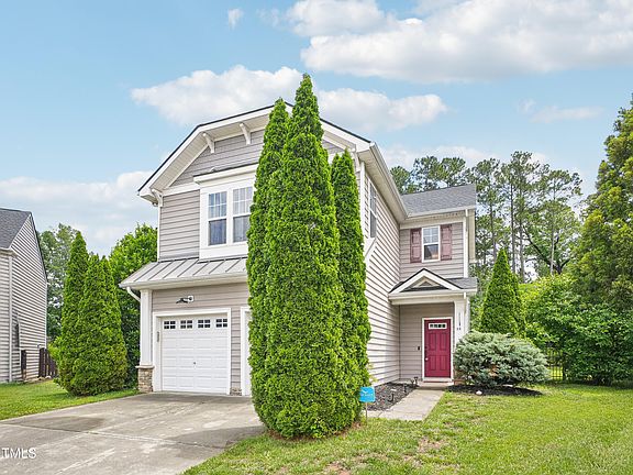 Tucked away on a quiet cul-de-sac in the desirable Brightleaf at the Park community, this beautifully maintained home combines space, style, and smart upgrades on one of the neighborhood's larger, flat lots. Inside, you're welcomed by warm hardwood floors that flow throughout both levels of the home. Tall windows in the main living areas flood the space with natural light, creating an open, airy feel. The spacious living room connects seamlessly to a well-appointed kitchen—ideal for everyday living or entertaining. Upstairs, the expansive primary suite stands out with dual walk-in closets and room to truly relax. Every bedroom offers generous proportions and great light. Step outside to enjoy the fully fenced backyard with a stone patio—perfect for grilling, gardening, or enjoying your own private outdoor retreat. Major updates including a newer roof, fence, and water heater (all less than a year old) add peace of mind. Energy-conscious buyers will appreciate the solar panel system, which keeps electricity bills impressively low—averaging around $50 per month. This home also includes a spacious two-car garage and convenient access to major routes like 540, RTP, and RDU Airport. Enjoy nearby shopping and dining in Brier Creek, and take advantage of optional access to Brightleaf's resort-style amenities, including a pool, fitness center, dog park, and scenic walking trails.