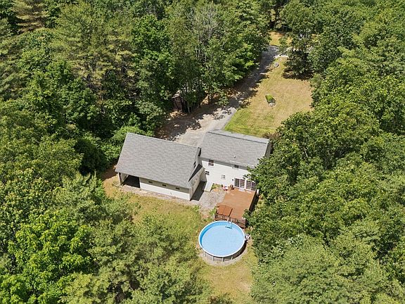Tucked back from the road and surrounded by mature trees, this spacious colonial offers the perfect blend of privacy, space, and outdoor enjoyment- set on 2.66 private acres. With over 2,100 square feet of living space, this 3-bedroom, 2-bathroom home features an attached 2+ car garage, an additional carport, and an upstairs area ready for your finishing touches to add square footage and expand the main house. Step outside and unwind in your own backyard oasis. The expansive deck is perfect for entertaining and leads to a fenced-in above-ground pool and hot tub- great for summer barbecues or relaxing evenings under the stars. There's also a play area tucked just beyond the trees, creating the ideal outdoor setup for everyone to enjoy. Out front, you'll find a 32x12 pole barn for additional storage. Inside, the layout is bright and functional with generous room sizes, a welcoming front entry, and a sunny living room open to the dining area with large windows and doors. The first floor also offers a full bath and a separate office with a closet. Upstairs features three bedrooms, including a front-to-back primary suite with a walk-in closet and a full bathroom. Located just minutes from Westbrook and Portland, this property offers the best of both worlds—peaceful seclusion with convenience nearby.