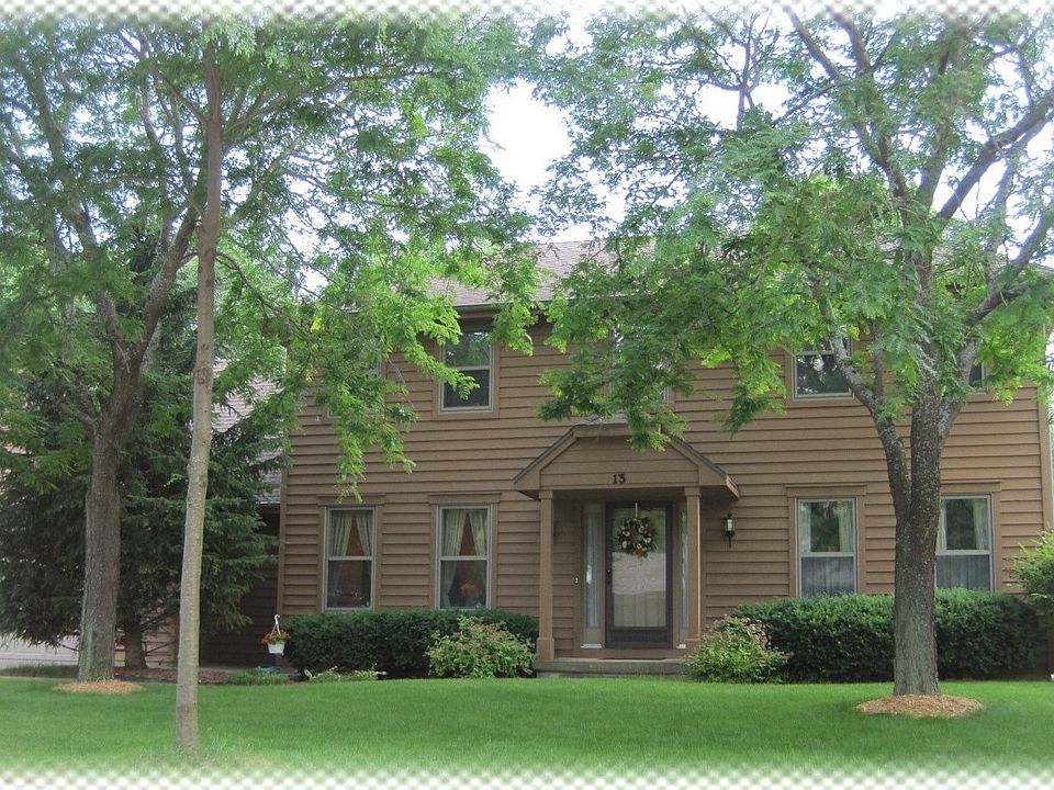 BEAUTIFUL WOODED WOODCREST AREA. Classic one-owner 2 story. Oversized rooms thru out. Neutral decor, laminate floors, skylights and a great 3 seasons room. Oversized FR has fl to ceiling brick FP. Living rm could be 1st fl office. Lg BRS have walk-in-closets. Kit offers lg center island, planning desk, appliances. Close to Janet Berry School.