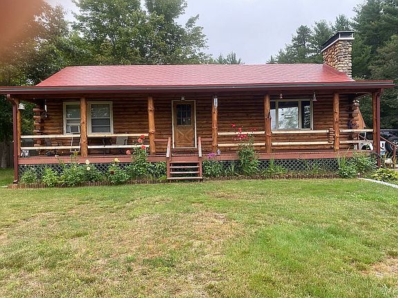 Open concept log style ranch with full basement. Located in a quiet neighborhood location, close to main roads, 20 minutes to Concord or Manchester. Large Gambrel 2 car garage has 2nd floor storage and power. Nice level lot with mature landscaping. Open concept kitchen and living room with wood burning fireplace complete this rustic country feel.