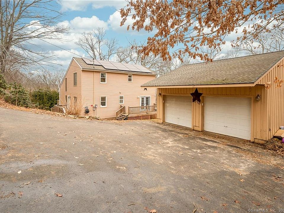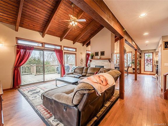 If you are looking for a house with character this is the one for you! This 3 BR, 2.5 bath Contemporary home sits very privately on 2 acres and the open floor plan with cathedral ceilings and exposed wood beams will definitely impress you. Multiple sliders leading to expansive deck that is perfect for entertaining. Master bedroom with full bath, fireplaced living room, updated kitchen with granite, updated bathrooms and a new furnace are just some of the great features of this amazing property.