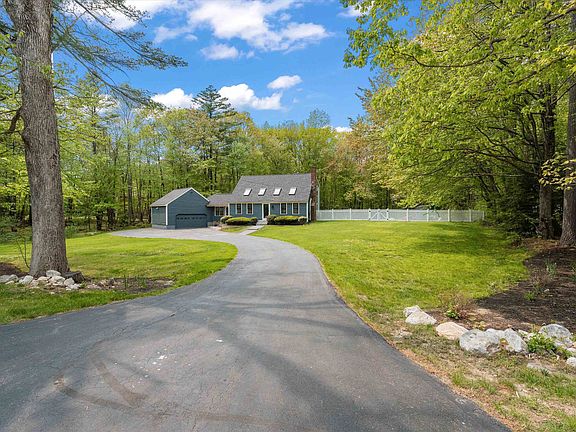 EXCEPTIONAL SUN-FILLED CAPE IN AN IDYLLIC SETTING...A HOME FOR ALL SEASONS! Nestled on lush green acreage you’ll enjoy tranquil living in this beautifully sited home surrounded by mature leafy trees. As you enter you’ll have an overwhelming sense of space as your eye is drawn towards cathedral ceilings and well-placed skylights that let light in. A cheerful fire warms the living room where you’ll love curling up with a good book and relaxing. Grab a cup of coffee in the kitchen as you pull up a chair to watch birds and the changing seasons through oversized windows. A sliding barn door reveals a cozy family room dubbed “the warming hut” where a wood stove creates the perfect atmosphere to play games and take the chill off after hiking or biking on nearby conservation trails. On balmy days enjoy delightful entertaining in the three season porch or take the party outside to the large composite deck for barbecues and a long relaxing soak in the hot tub. There is plenty of room to flex your green thumb in the gardens and the flat back yard will play host to memorable summer nights around the fire pit. Retreat to the sizable first floor primary bedroom for restful sleep and upstairs two additional bedrooms are perfect for guests or create a handy home office space. With multiple indoor and outdoor gathering spaces you’ll love the manageable size and amenities of this well-kept gem. IMMERSED IN NATURE WITH FANTASTIC FLEXIBLE SPACES...YOUR DREAM OF A HOME IN THE COUNTRY BEGINS TODAY