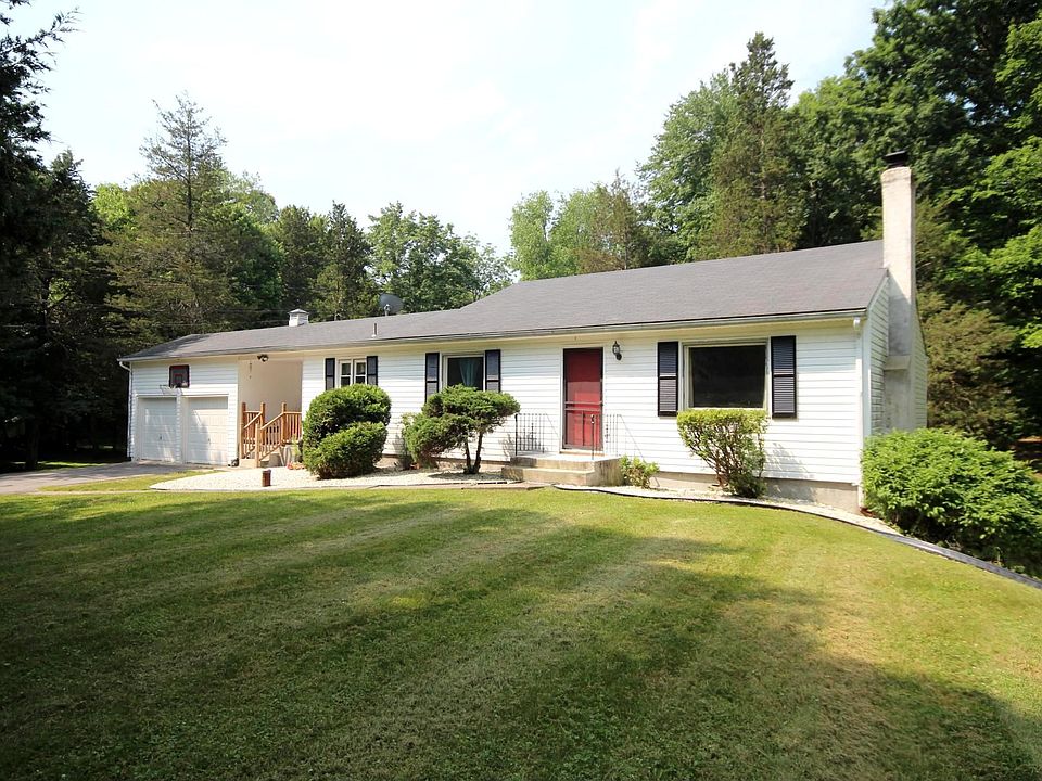 Outstanding cul-de-sac setting on beautiful 1+ acre lot. This comfortable ranch is an awesome value & has tremendous potential. Living room w/fireplace, spacious kitchen, good size bedrooms & full walk-out basement that is ready to be finished. Large stone patio & peaceful backyard surrounded by mature trees are perfect for outdoor entertaining. Move-in ready - re-finished hardwood floors throughout, freshly painted, central air & much more!! Taxes incl STAR of $ 964 (in effect) are $6,198.