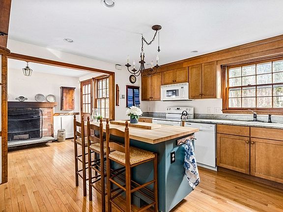 **ALL OFFERS, IF ANY, DUE BY SATURDAY AT 6PM. ** DESIRABLE Liberty Pole Neighborhood! Welcome to this charming cape with 4 bedrooms, 1.5 baths and a 2 car garage. This lovely home features hardwood floors throughout (even under the carpet), a spacious dining room with custom cabinetry and a bright, open living room with a wood burning fireplace where you can sit and relax or entertain family and friends. The updated kitchen with granite counters, an island with seating and plenty of storage space opens to the mudroom with fireplace and access to either the front or back yard. The cozy den with built in shelving and a closet along with a half bath with linen closet complete the first floor. The second floor boasts four bedrooms each with ample closet space, full bathroom with tub and shower and a separate linen closet. Set up your grill and outdoor seating on the beautiful stone patio in your backyard and enjoy the serenity overlooking the abutting conservation land.