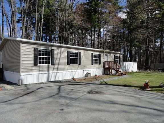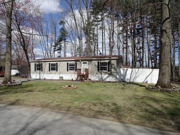 Move in Ready! Beautiful 1400+ SqFt Double Wide Trailer on a private Corner Lot. The home features everything you could ask for! Central Air and public utilities, 3 Large bedrooms including a Huge Master with walk in Master Bath with skylights, soaking tub, and double bowl sink. This home boasts a lot of updates including new laminate hardwood floors, patio and fence, and newer appliances. There is ample paved parking and a separate dirt driveway for recreational vehicles or storage. 2 Sheds in the backyard (One with power). You need to see this place in person! Very easy access to Rt 28 and 93 also close to schools and shopping! Seller is motivated! The $300 per month is strictly a land lease. There is no "park or association"