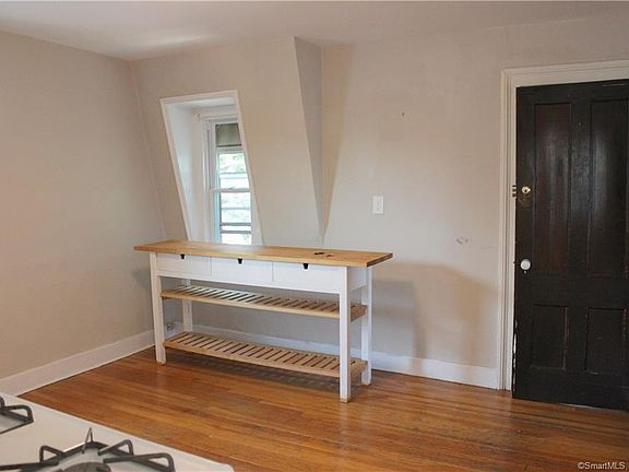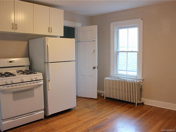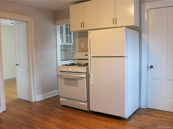 Spacious two bedroom apartment with hardwood floors and high ceilings in East Rock - steps to Yale School of Management! Rent includes heat and hot water! This four room apartment features a large eat in kitchen, living room, and two bedrooms. It has great character, with French doors and more. Laundry in basement. 1 garage parking spot included in rent, additional easy on street parking. Tenants pay for electric, and cable / internet if desired. Sorry, no pets. Conveniently located on the Yale shuttle bus and public bus route. Just steps to gourmet markets, restaurants, shops, parks and minutes to Downtown & Yale! Available August 1st with 1.5 months security deposit and good credit required.