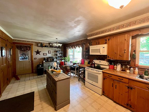 Cape style home for sale in Millinocket, Maine. The home features a large 3 season sunroom, eat in kitchen, living room w/ wood burning fireplace, 2 bedrooms w/ closets, and a full bathroom. The second floor features a sitting area, bedroom w/ a closet, a primary bedroom with a large walk-in closet or office, and a half bath between the two upstairs bedrooms. There is an unfinished basement, a 1 car garage, newly paved driveway, and a large back yead with room for gardens or entertaining. Close to Baxter State Park and Mt Katahdin. This area is known for great outdoor recreation including hiking, snowmobiling, ATVing, hunting, and fishing. Also close to schools, shopping, restaurants, the hospital, and other amenities that Millinocket has to offer.