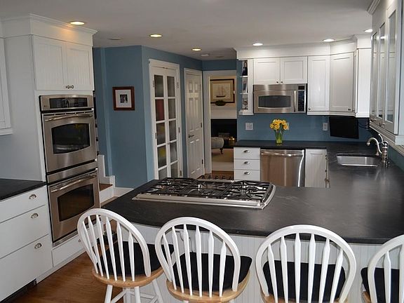 - Kit Dscrp: Flooring - Wood, Countertops - Stone/Granite/Solid, Deck - Exterior, Stainless Steel Appliances, Open Floor Plan, Recessed Lighting, Exterior Access, Wine Chiller, Gas Stove, Peninsula