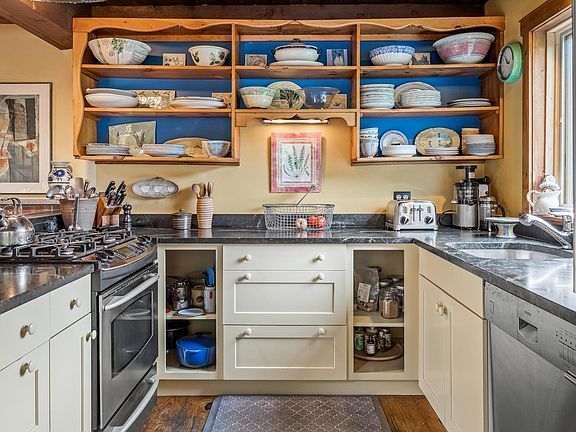NEAR THE END OF A DEAD-END ROAD - Tucked away on 5 acres, this inviting 1 3/4-story Cape-style home offers privacy and warmth. Built in 1983/1991 and well maintained, the home features 3 bedrooms and 2 baths, including a privacy guest suite on the spacious main level. Inside, you’ll find pine floors throughout, cathedral ceilings, a second-story loft, and a comfortable sunroom with terra cotta tile - great for plants and relaxing in natural light. The updated kitchen in 2005 is nicely appointed with a mix of custom drawers, cabinets & open shelving. Beautiful soapstone counters with an undermount sink, and equipped with a Liebherr refrigerator with dual freezers and a Bosch dishwasher. The kitchen flows comfortably into the open living area, anchored by a Jotul woodstove. Other highlights include a solar roof array to pre-heat the 80-gallon electric hot water system, a first-floor laundry with a newer washer & dryer, and a tiled main bathroom. There is a generous basement for additional storage. Outdoor living flows nicely to a larger private deck, a covered porch, and scenic surroundings ideal for gardening, recreation, or hobby farming. There's a cute little cabin tucked in the woods for the grandkids. With a metal roof, efficient systems, and thoughtful updates, this property blends rural charm with practical modern comfort. Conveniently located within easy driving distance of Woodstock, Quechee, DHMC, and Dartmouth College. Occupancy given in early January 2026.