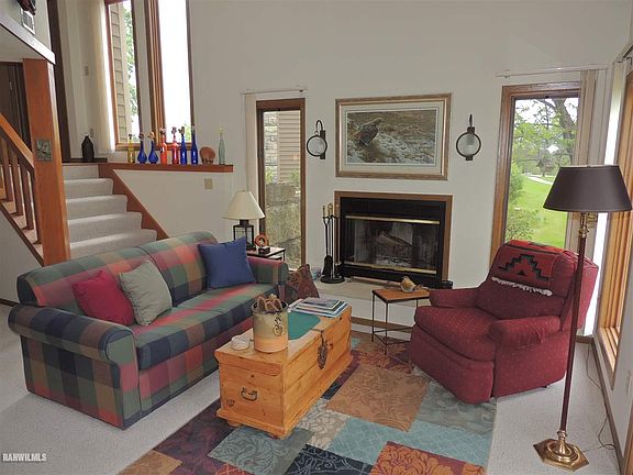 This unit has it all...Location, views, setting! Immaculate end-unit two bed, two bath Poplar Ridge Golf Villa offering stunning views of Eagle Ridge East Course #9 fairway, green, and pond plus breathtaking vistas of The Galena Territory and beyond! Upon approach, 13 Poplar Ridge greets you with a gorgeous mixture of stone, cedar, and lots of glass, and a water view immediately visible in the background. Entry opens to main level featuring living room with windows that frame an incredible view at every turn, wood-burning fireplace, vaulted ceilings with skylights, and access to rear deck, open dining area, large kitchen with tile floors and eat-at breakfast bar, comfortable guest bedroom and adjacent full bath. Ascend to the upper level to find a lofted sitting area overlooking main floor, spacious master suite with vaulted ceiling, beautiful elevated views, and private full bath with tile floors, generous vanity top, and shower/whirlpool combo. Sold mostly furnished with some exclusions to be negotiated via separate bill of sale (inventory available), and property has never been in rental. Close proximity to Eagle Ridge East Golf Shop, and not far from Owners' Club and Lake Galena. Truly an incredible property!