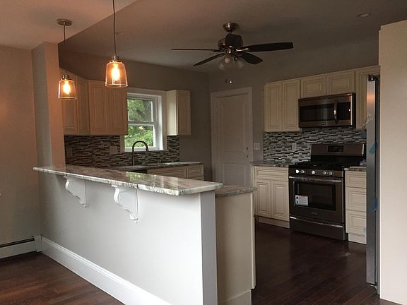 For rent is the second floor of a charming and historical mansard located in the heart of Danvers. This unit is just being finished with a complete, high end renovation, including all new windows, plumbing, electrical. Very well insulated, new high efficiency gas heating system. Unit features high end custom cabinets, kitchen is over 250 square feet, stainless appliances, dishwasher, granite counter tops,granite bar height seating, cherry floors, huge bathroom with a jacuzzi tub and marble tile surround, in unit laundry room with walk in closet, 2 big bedrooms, extra spacious closets, ceiling fans in each room, recessed lighting, hardwood floors throughout. Additional storage area. Too much to list. The apartment is completely brand new and high end. Offers 2 off street parking spots, residential neighborhood within walking distance to the downtown area and just minutes from all major highways. The property is professionally maintained year round.