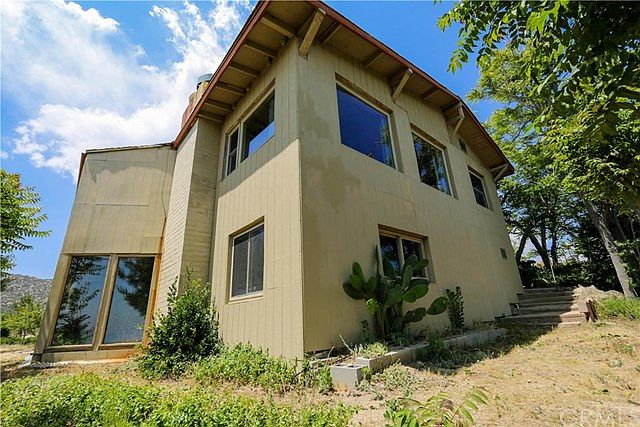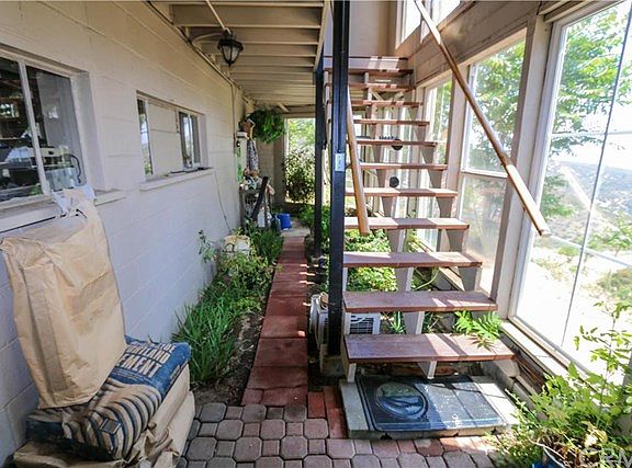 Incredible off the grid 3 bedroom 2 bathroom home located in the Poppet Flats area of Banning. This 1268 square foot home was built in 1958 and sits on an enormous 5 acre lot with additional 0.6 acre easement. This self sufficient home has a complete arsenal of solar panels w/ several batteries. 360 degree panoramic views from every window are simply breathtaking and go on forever. On clear days visibility as far as Palomar Observatory and Diamond Valley Lake. Entire inside of the home upgraded with newer carpet throughout most of the common areas. There are wood floors in the bonus room and tile floors in the kitchen. The kitchen is a good size with ceramic tile flooring, a free standing range and stainless steel sink. There is a good amount of cabinet and counter space providing lots of room and areas for prep. There are several wood burning fireplaces with heatilators providing for great natural heat throughout the home. The bonus room features laundry hook ups, great insulation providing a cool area in the summer and warm areas in the winter. There are two bedrooms upstairs. The upstairs bathroom has been remodeled with tiled shower/tub enclosure. The master bedroom is downstairs and is very large with tiled shower and remodeled bathroom.