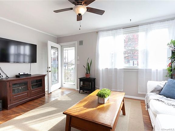 Welcome home to this sun-filled 2 bedroom, 1 bath home in the desirable Forestville section of Bristol. The inviting living room features beautiful hardwood floors and abundant natural light. Just past the living room is a spacious dining area for easy entertaining. The efficient galley kitchen offers a surprising amount of cabinet space. Access to the large finished basement and back yard round out this part of the home. Head back through the living room to the hallway (with linen closet) that connects the two bedrooms and updated full bath. The serene master bedroom has hardwood floors and a large closet. A light and bright second bedroom also features hardwood floors. A finished basement adds approximately 400 square feet of living space, perfect for a rec room, home office, gym, and more, plus added storage. Head outside to a partially fenced-in, low maintenance back yard where you can dine al fresco in the summer or gather around a fire pit during the cooler months. The extra wide detached one-car garage has plenty of space for the car enthusiast, DIYer, or to simply store your tools and lawn equipment. If that's not enough, there is also an attached shed. Freshly painted in soothing, neutral colors, this lovingly maintained home also boasts newer mechanicals and central air conditioning. Located in a tucked away community just minutes to shopping, dining, major highways, ESPN, Lake Compounce, and so much more!