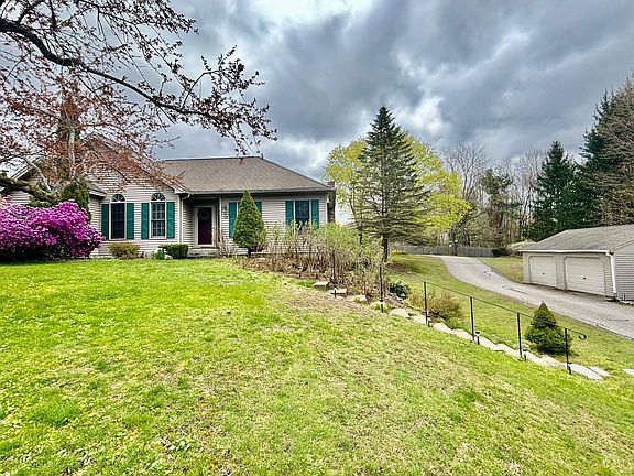 Open House May 11th from 11am-1pm. Newly priced and photographed....This Executive Ranch boasts over 3600 SF w/ a finished walk-out basement & (total of) 4-car garage. Updated mechanics include a brand new Baisi Boiler, tankless water heater direct (kitchen), Diakin mini-split/heat pump (4 total), whole house carbon water filter & new indirect 40 gallon water heater! Open floor plan area includes living room, kitchen with island seating, eat-in breakfast area w/ built-in desk space. French doors open to dining/sitting room with hardwood flooring and new wood stove insert w/ blower. Three bedrooms total on main floor including Primary Bedroom suite with walk in closet & built-in storage and bathroom. Additional full bathroom on main floor. Spacious 14 X 30 Sunroom family room on main floor w/ cathedral ceilings & radiant heat flooring, wall of windows and built-in entertainment wall & direct access to deck. Need room for guests, in-law and/or work space? Lower level walk out includes tiled finished room, separate tiled finished room w/ closet & direct access to 3/4 bathroom with storage. French doors to exterior walk-out. Utility room completes the lower level. Outside you'll find an updated deck with access to family room and kitchen/living room, mature perennials, tree swing, attached oversized 2 car+ garage plus additional detached 2 car garage. Radon air mitigation system. Wired for portable generator.