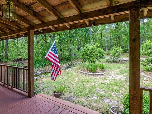 Gorgeous log cabin home with large front porch for relaxing. Situated on a 1.7 acre wooded lot at the end of a cul-de-sac. Four bedrooms and 3 baths, wide plank hardwoods, cathedral ceiling and exposed beams. Split unit for up and down. In addition there is an detached, oversized 2 car garage plus 3rd space that will fit a 45ft motor coach.