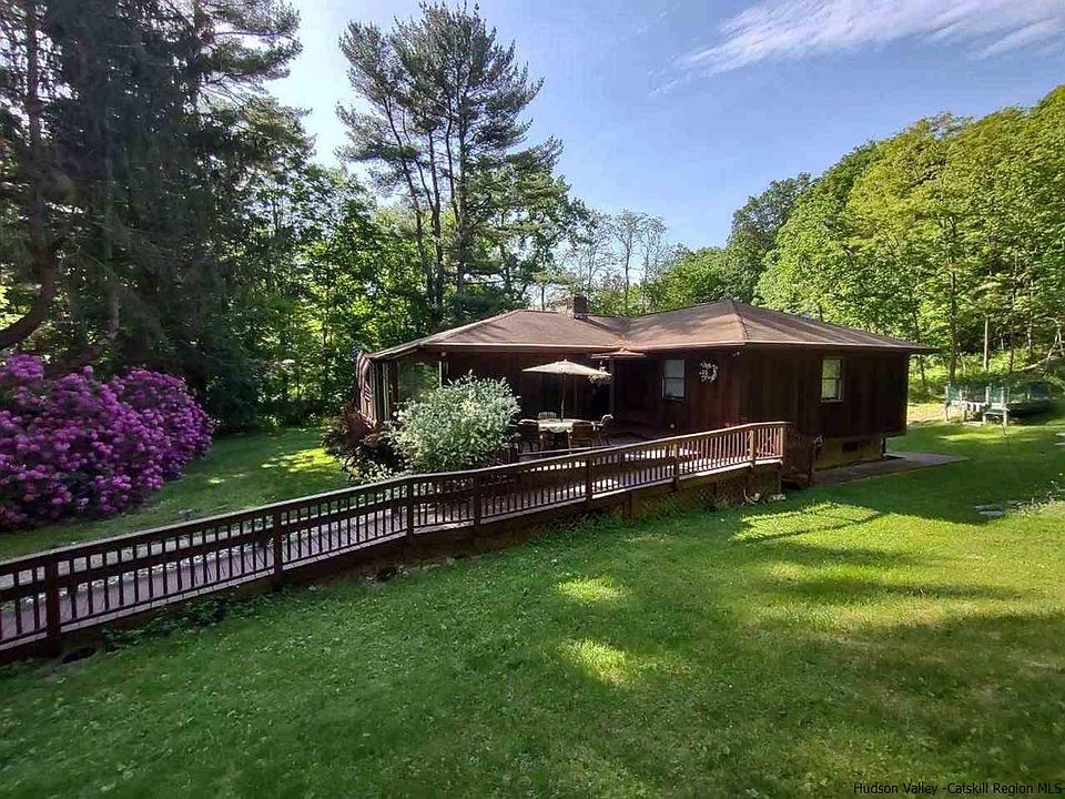 The best of both worlds! Close to the charming town of Pleasant Valley yet privately set on a 1.1 acre lot with a park-like setting. Easy access to the Taconic Parkway and Route 44. This well maintained ranch home offers loads of space! The large living room with its wood burning fireplace opens to the lovely enclosed porch and the dining room. The custom designed eat in kitchen will delight the chef. There is a split floor plan with the master suite on one side of the home with two bedrooms and a full bath on the opposite side. The master has a large walk in closet, and a spa-like bath with a spa shower and jetted tub. The lower level has a laundry area and a playroom area with a second fireplace. There is loads of storage and a workshop area. The yard is the perfect sta-cation with the large deck that leads to the above ground pool. Central a/c, pocket doors.. so much here to see! Do not miss this one