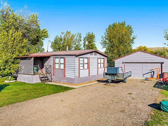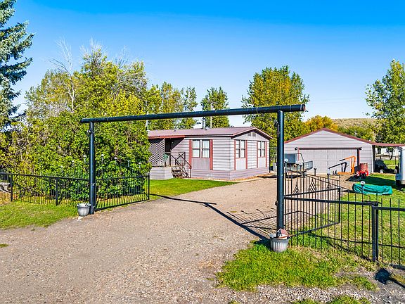 SMALL TOWN LIVING just minutes from Great Falls! This 3 bedroom, 2 bathroom 1977 mobile is on 3 well-manicured lots in Tracy with mature trees, underground sprinklers and a custom steel fence surrounding the perimeter of the property. Spread out in the home's 2 living spaces, one with a pellet stove to keep you toasty warm! Primary bedroom has ample closet space and an ensuite to include a garden tub. 2 additional bedrooms and a full bathroom available. Access your enclosed porch from sliding doors to enjoy a large entertainment area with a hot tub and indoor pond with water feature. Outdoor patio area connects to large 2-car garage with attached lean-to carport and rear storage shed giving storage for toys and tools! Less than 10 minutes from east end of Great Falls and MAFB lending convenience to a country lifestyle. Contact Jessie Robinson at 406.781.2835 or your real estate professional.