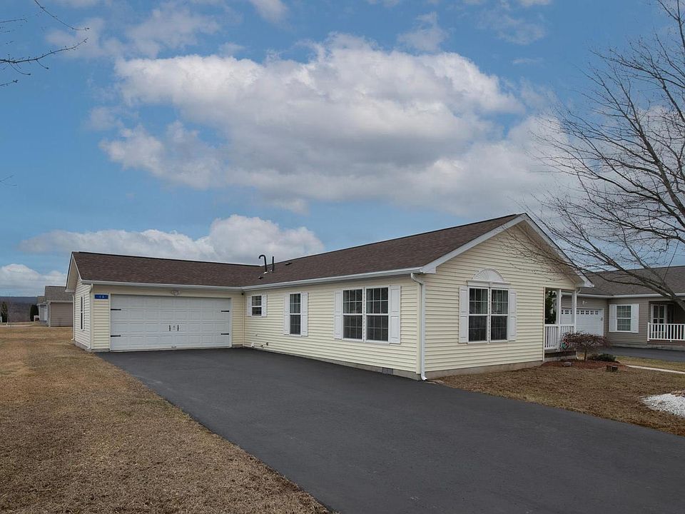 Lovely 3 Bedroom 2 Bath rancher in this 55+ Country Community. Enjoy Cathedral ceilings & Crown molding with an Open floor plan and a pretty Sunroom with Slider to front porch. The spacious Primary bedroom boasts a large walk-in and gorgeous Luxury bath with corner tub & double vanity. Bedrooms 2 & 3 are nice size with great closets and the hall bath is super clean. The Laundry sits off the kitchen. The community offers a Clubhouse and Pool for your enjoyment! Add a 2-Car garage and it's your perfect next home!