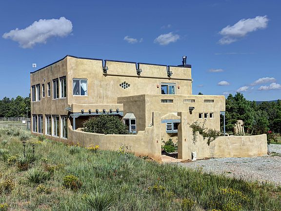 Country living at its finest, only 30 minutes away from Albuquerque! Come see the 100 foot pines, stars like you've never seen, and not another house in sight! Windows, windows, windows... true indoor/outdoor living in this custom, 3,324 SF beauty with non-stop views. Bring all your critters; 6.37 usable acres, custom 3 stall barn, pipe fenced turnouts, barn master stalls, hay storage, 100x80ft arena, fenced for pasture rotation. Dog fenced 1/2 acre. Fully insulated, 4 car garage, with tons of cabinets for all the toys. Gorgeous additional 495 SF guest house for the in-laws. 50 miles of Forest Service trails 5 miles away. This is where ABQ comes to play! Open floor plan, large rooms and 2 custom fireplaces. Brand new TPO roof with transferable warranty.