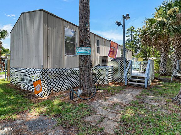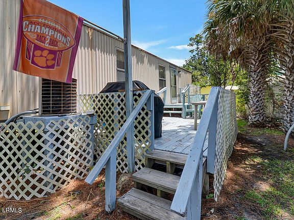 Friendly Waterfront Golf Cart Community of Tansi Village * Great 2nd Home Beach Get-a-Way Destination or Full Time Residence * They offer a Community Pool, Community Dock with a Float, Clubhouse, Community Library & Picnic Tables with a Grill Area and Swings Overlooking the Waterfront * Short Drive to Hunting Island State Park / Beach & Downtown * Home is located right around the corner from all of the amenities, about 2 blocks * Offered Fully Furnished - seller will keep the small freezer * The home has been lovingly cared for over the years as a vacation area for the family * There's a newer shed out back * The large deck area off the front door is a great area to relax surrounded by Palm Trees * This 2 Bedroom, 1 Full Bathroom Home is a great place to relax * HVAC recently serviced *