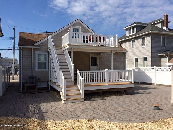 Enjoy the summers in this centrally located two family home only six houses from the beach. First floor features 3 bedrooms, enclosed porch central air and granite counter tops. Also a basement with a second bath and washer/dryer. A roomy deck off the back door with an outside shower. Second floor has 2 bedrooms with central air and an outside deck for taking in those beautiful summer breezes. Also, an established income of $1500 per week in the summer.Lots of storage in the two car detached garage. Maintenance free vinyl siding and newer decking.You won't have to worry about finding a parking space during the busy days, just revel in the luxury of pulling into your seemingly endless exquisite paver driveway.