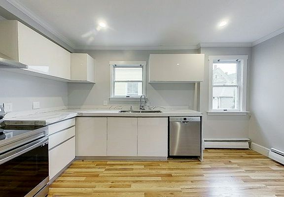 Available for a Yearly Term May 1st 2025 Large 1st floor 3 bedroom 1 bath unit! High ceiling and large windows throughout. Updated Kitchen with stainless steel appliances and washer/dryer hookups open to the living room. Three Large bedrooms. Off-street parking! Additional Storage in Basement tenants pay all utilities