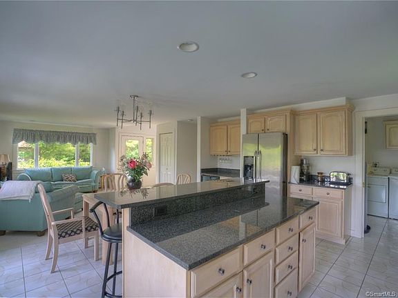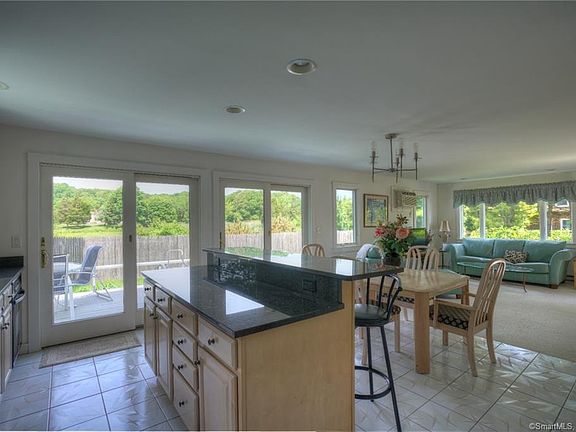 Tastefully designed Contemporary style home in a quiet Mystic neighborhood. Enter into an open and bright family room that flows into the eat-in kitchen. Entertain guests while preparing meals in your gourmet kitchen with granite counter tops, wine chiller, a center island and breakfast bar. Sliders from the kitchen lead to the tranquil side deck where sounds of the abutting cove can be enjoyed. Wake up to peaceful waterviews in your private Master Bedroom oasis upstairs complete with a fireplace, walk-in closet and full bathroom with heated tile flooring. Two additional bedrooms downstairs as well as a second full bathroom with heated tile floors and separate laundry room. Walk to Downtown Mystic.